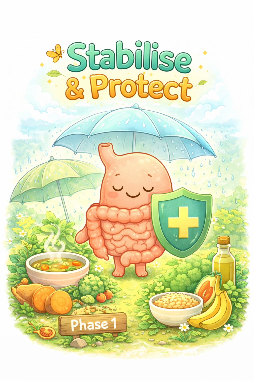 This phase focuses on calming irritation, creating predictable meal structure, and reducing overall digestive load.